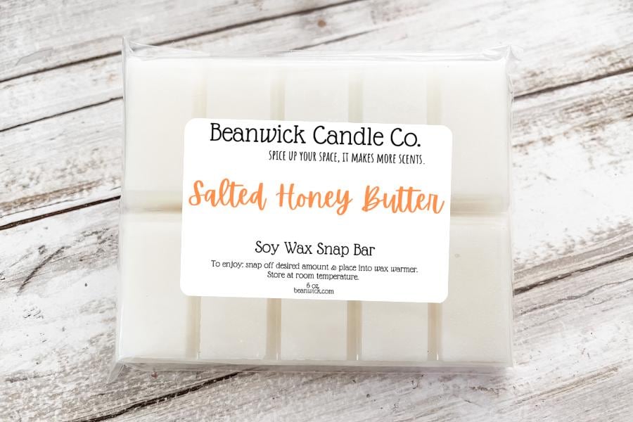 Our 1 pack (2 bars) - SALTED HONEY BUTTER Soy Wax Melts offer a premium home fragrance experience with soy wax melts designed to fill your space with a strong scent throw. These buttery soy wax bars deliver a crave-worthy salted honey butter scent that blends sweet, salty, and spiced notes for an inviting atmosphere. Each snap bars package contains two natural soy wax snap bars weighing approximately 4-5 oz, crafted to maximize fragrance release and enhance your living space.